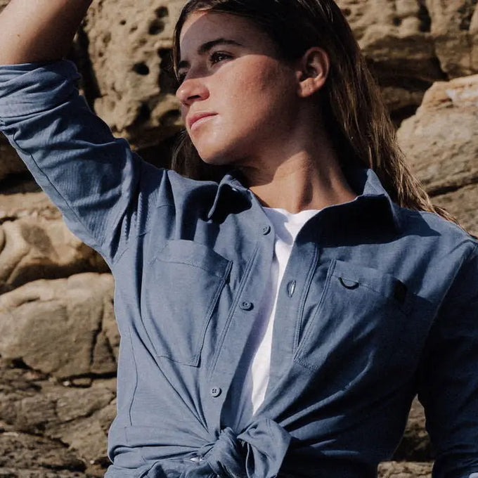 Notre Chemise LS True est parfaite pour lui et pour elle, idéale pour votre style estival chic et décontracté. Disponible dans une superbe couleur bleu horizon, elle complète sans effort n'importe quel ensemble ou se marie parfaitement avec nos Shorts True pour hommes et Shorts True pour femmes. Fabriquée à partir d'un mélange de Lyocell, de coton et d'élasthanne, le Lyocell est une fibre durable fabriquée à partir de ressources naturelles, offrant une sensation douce et un excellent tombé. Dotée de deux poches poitrine et d'une boucle élastique pour les lunettes de soleil, cette chemise associe praticité et détails uniques, en faisant ainsi un ajout essentiel à votre garde-robe estivale.