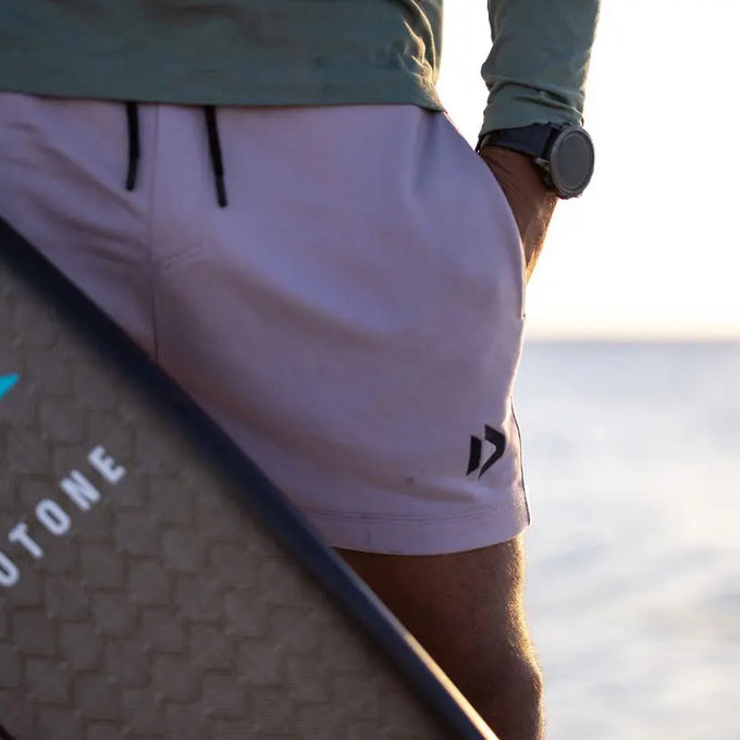 Soyez à l'aise dans notre short de survêtement Onshore. Il est doté de deux poches avant, d'une poche arrière et d'un cordon de serrage à la taille, avec une longueur plus courte que la moyenne. Disponible dans un coloris neutre qui correspond aux tendances actuelles.