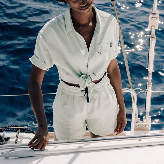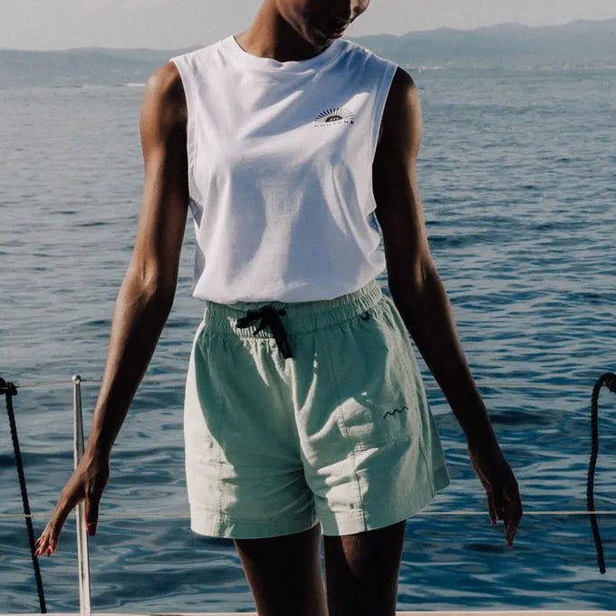 Nos True Beach Shorts pour femmes sont confectionnés dans un tissu de coton bio froissé et respirant qui a une texture unique conçue pour correspondre à votre style chic tout en assurant confort. Parfaits pour les jours d'été, ils ont des détails spéciaux comme une boucle élastique pour vos lunettes de soleil. Disponibles en deux coloris, associez vos True Beach Shorts avec notre Tee SS True Women pour compléter votre look estival flatteur.
