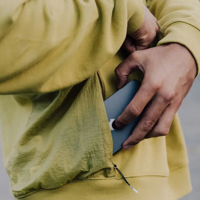 Le Sweater DT Explore est un incontournable unisexe pour se lancer dans des aventures avec style. Disponible dans deux coloris vibrants, ce pull se distingue par sa coupe légèrement oversize pour un look décontracté sans effort. Confectionné dans un mélange de coton biologique et de polyester recyclé, il offre une sensation douce et luxueuse au toucher. Parmi ses caractéristiques phares, on trouve une poche transparente en matériau ripstop, ajoutant de la praticité en déplacement tout en conservant une esthétique moderne et à la mode. Où que vous mène votre voyage, cette pièce assure confort, praticité et style incomparable.