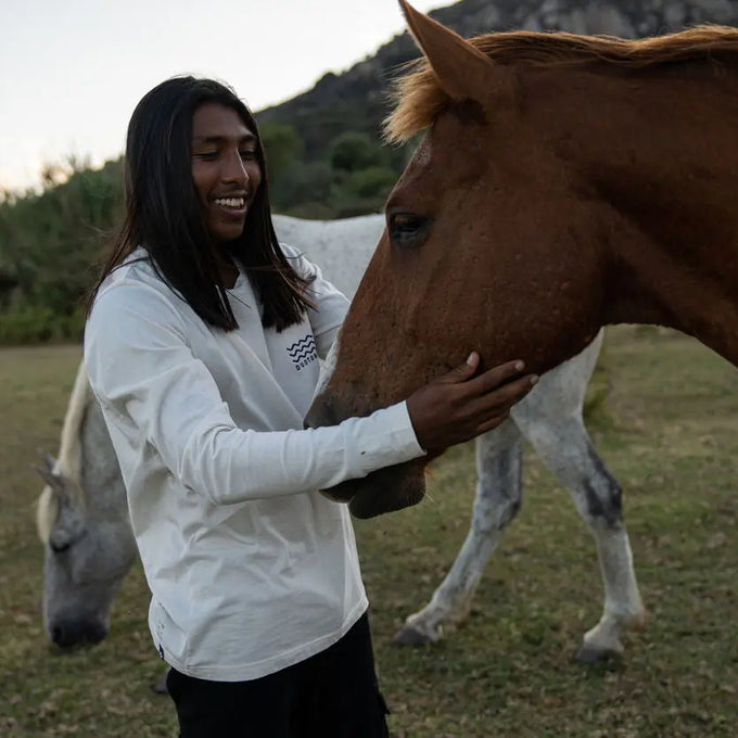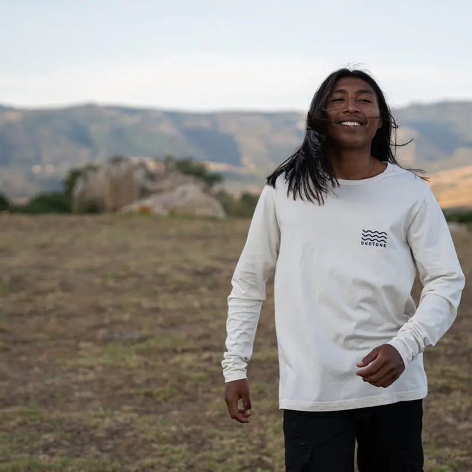 Le tee-shirt à manches longues Undyed est un vêtement neutre et bien ajusté, très apprécié des coureurs de notre équipe. Doté d'un graphisme simple de vagues en duotone et fabriqué en coton biologique respirant, ce haut est facile à porter et à associer.