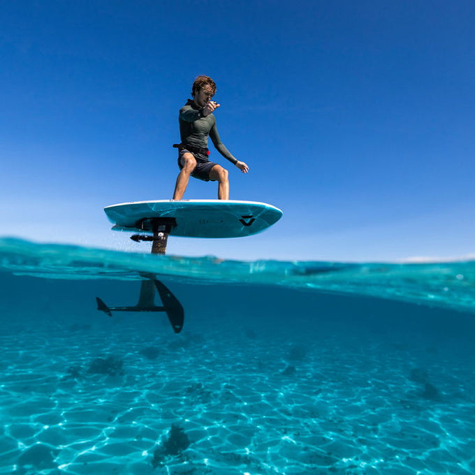 Ce design innovant vous permet de garder les mains libres tout en vous poussant du sol, en pagayant, en plongeant ou en saisissant le mât de votre aile. La télécommande est intuitive et assure, avec le récepteur dans la boîte de batterie, une transmission de signal fiable à l'ESC/moteur.