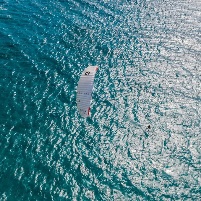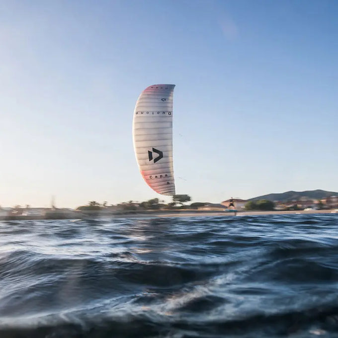 L’aile a une pression en barre relativement légère, ce qui signifie que tu peux piloter la CAPA toute la journée, et tu seras épaté par la qualité de son pilotage. De nature dynamique et réactive, la CAPA procure davantage les sensations en barre d’une aile gonflable que celles d’une aile à caissons traditionnelle. Son lift est incroyable, ce qui facilite les tacks et les gybes sur le foil. Si tu utilises un twin tip, le hangtime et la flottaison qu’offre cette aile sont tout à fait incroyables. Il est plus question de vol que de sauts. Ses nouvelles entrées d’air permettent à l’aile de se gonfler rapidement et la rendent très stable en présence de turbulences et de rafales. Le redécollage est facilité avec la CAPA : il te suffit de tirer sur la ligne de pilotage, comme pour un LEI, et les nouveaux channels évacuent rapidement l’eau si besoin.