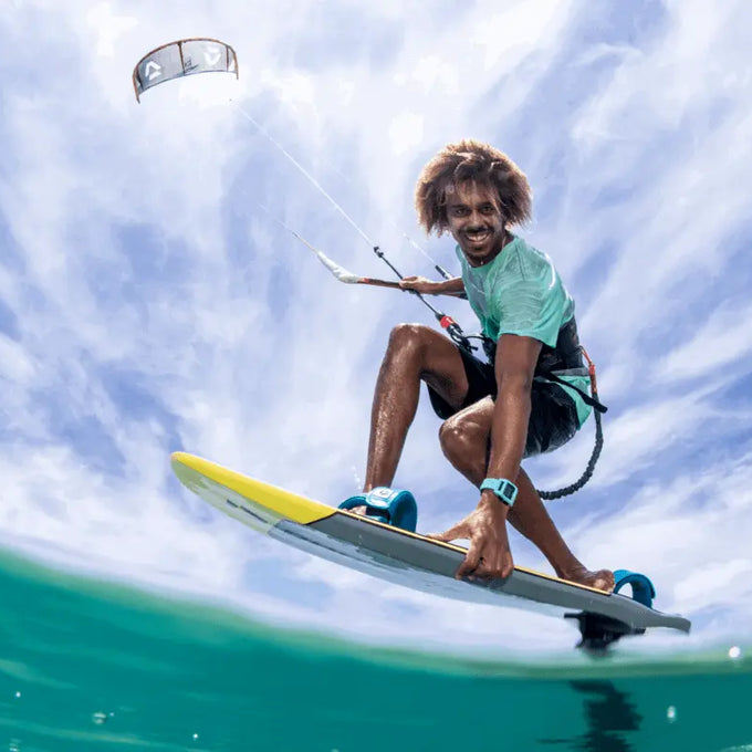 Ce design unique offre pas mal de volume en cas de besoin, son rocker élevé au niveau du nose haut et sa large surface la rendent incroyablement maniable et confortable. Cette combinaison de caractéristiques permet d’augmenter de façon significative les performances et la maniabilité de la planche par vent léger. Les rails ont été optimisés pour des angles d’inclinaison plus prononcés et des performances en remontée au vent tout à fait incroyables. Techniquement, cette planche est un véritable chef d’œuvre avec un Track Four Way Mount, une valve pneumatique pour protéger la construction carbone lors du transport et de multiples options de footstraps pour mieux s’adapter à tes préférences personnelles en termes de stance. La Place SLS est la planche de kitefoil avec laquelle vous ne passerez pas inaperçu, non seulement sur l’eau, mais aussi sur la plage !