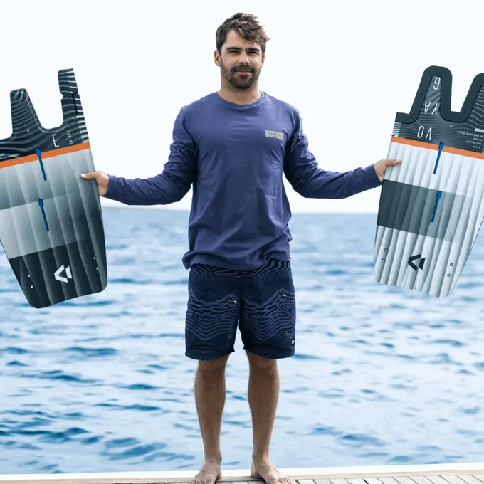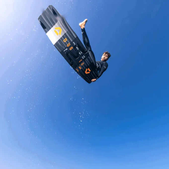 Une toute nouvelle planche dans la gamme Duotone, la Voyage est une planche que beaucoup d'entre vous demandaient et finalement, après des années de tests et de perfectionnement du shape et du design, la première planche split de la gamme est arrivée ! De nombreux splitboards sont confrontés à deux problèmes principaux : le flex et l'assemblage. La Voyage surmonte ces difficultés en utilisant une connexion M-Spine qui entrelace les deux moitiés de la planche, de sorte qu'elles agissent comme une seule lorsqu'elles sont connectées. Vous n'avez besoin que de deux broches pour assembler la planche (pas de vis ou de boulons compliqués que vous pourriez perdre dans le sable), et les broches sont reliées à la planche, de sorte que vous ne pouvez pas les perdre pendant le processus d'assemblage. La cerise sur le gâteau, et ce qui rend la Voyage si unique, est le design lui-même. En utilisant la fantastique Select comme point de départ, la Voyage a d'emblée un ADN incroyable. La planche est conçue pour le freeride et le big air, avec un ride confortable et des caractéristiques de flex facile. Elle est douce dans le clapot et fantastique pour s'envoyer en l'air. Les extrémités ont été ajustées pour la flexibilité et des channels ont été ajoutés pour offrir de l'adhérence et une meilleure conduite lorsque l'océan est agité. Facile à assembler, engageante à rider, idéale pour les voyages mais surtout, incroyable pour le freeride et le big air, la Voyage est une planche de split pas comme les autres.