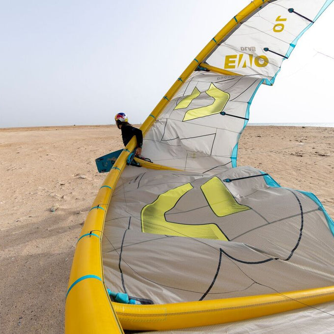 La clé de ses performances exceptionnelles est l'amélioration de l'efficacité de la remontée au vent et des capacités de depower. Le bord d'attaque plus étroit réduit la résistance à l'air, ce qui permet à l'aile de voler plus en avant dans la fenêtre de vent, pour une meilleure remontée au vent et un depower plus efficace. Cette amélioration vous permet de naviguer en toute confiance dans un large éventail de conditions sans compromettre les performances. Pour un contrôle précis et une meilleure sensation de pilotage, l'Evo D/LAB est équipée d'un nouveau système de bridage à 6 points qui assure une transmission directe et en douceur de la puissance. Le bridage plus long améliore le contrôle même à pleine puissance, élargissant la plage de vent de l'aile pour une plus grande polyvalence. Un segment supplémentaire aux oreilles contribue à une réponse plus fine et à des sensations de freeride plus ludiques, offrant des capacités de rotation plus rapides et une direction plus directe. Le feeling en barre plus léger et plus précis améliore le contrôle et le jeu, vous assurant un retour instantané de la position de l'aile, ce qui se traduit par une puissance fiable et douce et une maniabilité intuitive. Par vent fort, la combinaison du bord d'attaque plus étroit et du système avancé de bridage à 6 points offre une stabilité et une fiabilité accrues, vous permettant de garder le contrôle tout au long de votre navigation. L'Evo D/LAB se caractérise par des performances optimisées en matière de sauts et de loops. Grâce à la construction optimisée des coutures, au bord d'attaque plus étroit et à la géométrie améliorée des oreilles, cette aile permet des sauts explosifs et des loops précis, ce qui vous donne la confiance nécessaire pour exécuter les manœuvres les plus ambitieuses.