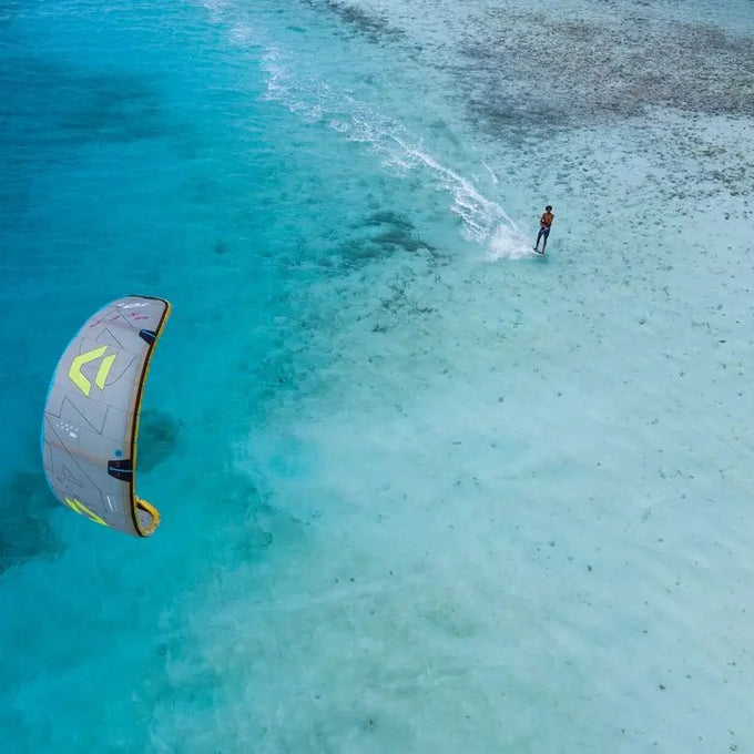 Generous volume and surface area under front foot carries speed with little kite power.
