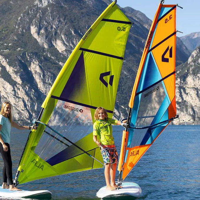 Une fois le planning atteint, la voile reste très équilibrée. Le flux d’air peut être transformé progressivement en propulsion afin que le windsurfer maîtrise toujours pleinement la vitesse souhaitée. L’utilisation de Dacron et de vinyle rend la Duotone ALFA quasiment indestructible et en fait une voile idéale pour la formation.