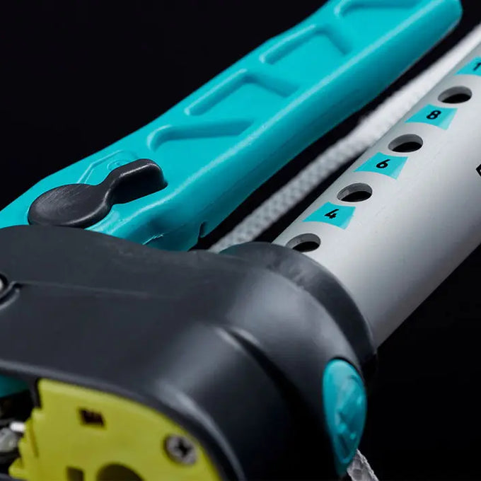 Depuis de nombreuses années, la POWER.XT est la référence en matière de rallonges à repères d'étarquage. L’essayer une fois, c’est l’adopter définitivement. Grâce à son levier intégré, elle assure une tension au guindant optimale et permet également un ré-étarquage ou un micro-réglage individuel parfait pendant la navigation. Grâce à la POWER.XT, même les enfants sont en mesure de gérer les tensions extrêmes au point d’amure propres aux voiles de slalom modernes. Il suffit de quelques secondes pour régler n’importe quel profil au millimètre près. Le levier de longueur 15 cm et lle rapport de force de 1/60 permettent d’étarquer sans fournir d’effort physique particulier.