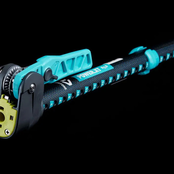 Mis à part le concept de base, la POWER.XT 2.0 n’a presque plus rien en commun avec le modèle précédent. Du mécanisme à cliquet ultra-solide avec levier à la possibilité d’ajouter la fonction d’amortisseur, en passant par le démontage simplifié et le bout d’étarquage Liros® Dyneema très résistant... Le changement de conception est radical. La version actuelle offre une nouvelle bague de réglage qui présente une fonction unique : sur la base de la bague de réglage SDM, qui a déjà fait ses preuves, la variante RDM permet, pour la première fois, de garantir que le tube d'aluminium n’entre pas en contact avec le mat, ce qui empêche toute corrosion de contact. Aucune autre autre rallonge RDM n’en est capable ! Afin de garantir la même durabilité malgré le diamètre réduit, une structure sandwich à double couche se composant d’un tube extérieur en aluminium de 7075 et d'un tube intérieur ovalisé T8 est utilisée (technologie brevetée).