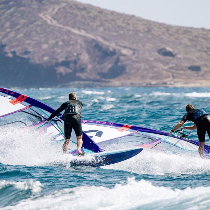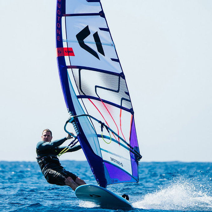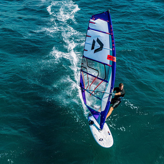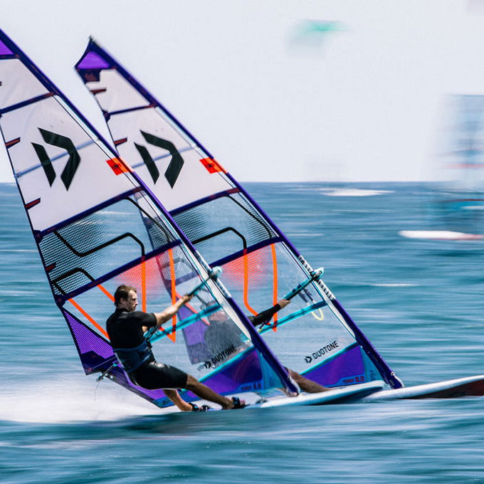 À la base de cette révolution se trouve le DESIGN 3 EN 1, que Kai a développé sur une période de 3 ans pour permettre une plage d’étarquage de la voile jamais vue auparavant. En association avec trois tout nouveaux HYPER CAM 2.0, une gamme d’utilisation extraordinairement large est possible : La S_PACE peut être étarquée vers le bas ou vers le haut de manière optimale en fonction de la fenêtre de vent, ce qui révolutionne fondamentalement la performance maximale disponible quelle que soit la fenêtre de vent ! La nouvelle S_PACE au DESIGN 3 EN 1 forme la symbiose parfaite entre nos voiles de slalom de course et nos voiles de freeride les plus efficaces : qu’il soit question de v. max, d'accélération de planning ou d'utilisation comme moteur de foil sportif, la S_PACE est la voile cam la plus polyvalente sur le marché. Le designer Kai Hopf allie dans cette voile la performance de pointe de la WARP à un comportement de course très équilibré et une plage d’utilisations sensiblement plus large. Tout cela grâce à un rond de guindant très réduit et presque droit sur le haut. Il en résulte que les modifications de la tension du guindant ont un effet très fort sur le bord de fuite. Une tension faible se traduit par un flottement limité de la chute, et une forte tension indique un flottement important. Les deux points d’étarquage MIN et MAX, qui se trouvent à une distance extrême l'un de l’autre, prouvent que le DESIGN 3 EN 1 présente une plage de vents incroyablement large. Plus encore, la S_PACE montre, en fonction de l’étarquage, un comportement de planning complètement différent. De même pour la sensation de gréement. En étarquage MIN avec bord de fuite tendu, il est possible de faire du pumping technique, l’accélération est très efficace et semble excessivement aisée. C’est aussi l’idéal pour le foil. En étarquage MAX, par contre, la S_PACE produit des sensations fort semblables à celle de la WARP. Elle accélère en continu et n’a aucune limite supérieure. Trois nouvelles HYPER CAMS 2.0 à la longueur réglable assurent une stabilité unique du centre de poussée et du profil ainsi qu’une rotation agréable. Une caractéristique unique pour la nouvelle S_PACE est la force conique marquée donnée au fourreau dans l’AERO SLEEVE DESIGN 2.0. Sa largeur dans la zone du wishbone, qui joue un rôle important dans l’aérodynamique, permet une transition idéale entre le bord avant « épais » du mât et la voile à la forme « fine ». Dans la voile au-dessus, le fourreau est au contraire plutôt étroit, afin de permettre un waterstart rapide. Le waterstart est encore facilité par le LUFF LIFT DESIGN de la WARP 20.20 qui apporte une poussée supplémentaire. Tout simplement génial : Pour pratiquer le foil, la S_PACE dispose d’un œillet spécial au niveau du bord de fuite qui permet de commander la voile de manière plus verticale !