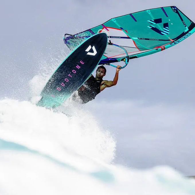 La Duotone Super Héro 2024 est la voile de vague pour toutes les conditions. Le centre de poussée centrée en fait la voile de windsurf la plus neutre qui soit.