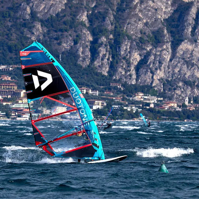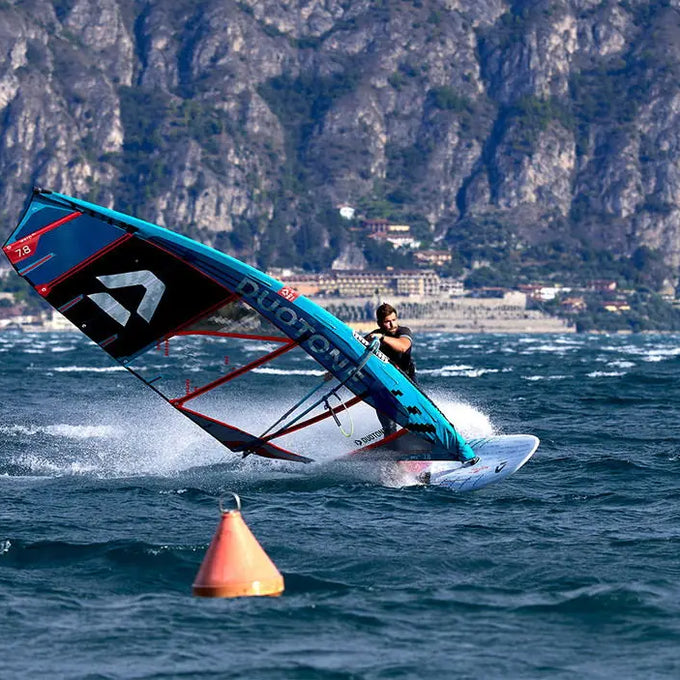 POUR 2022, NOUS AVONS COMPLÈTEMENT REDESSINÉ LA WARP_FIN ET NOUS POUVONS DÉSORMAIS AFFIRMER QUE LES CHANGEMENTS APPORTÉS ONT CONDUIT AUX MEILLEURES VOILES DE SLALOM QUE NOUS AYONS JAMAIS FABRIQUÉES. COMMENT POUVONS-NOUS VALIDER CETTE AFFIRMATION ? ET BIEN, 7 CHAMPIONS DU MONDE DE SLALOM ET 19 PODIUMS EN CLASSE MONDIALE PARLENT D’EUX-MÊMES. AU PLUS HAUT NIVEAU DU SLALOM, JENNA GIBSON ET JORDY VONK ONT REMPORTÉ LES CHAMPIONNATS DU MONDE IFCA, TANDIS QU’AU NIVEAU JUNIOR, 5 AUTRES DUOTONE YOUNG BLOODS ONT REMPORTÉ LES TITRES MONDIAUX DANS LEURS CATÉGORIES D’ÂGE RESPECTIVES LORS DES CHAMPIONNATS DU MONDE IFCA JYM. La WARP_FIN est non seulement la meilleure voile de course pour nos athlètes professionnels de classe mondiale, mais aussi pour nos juniors les plus performants. Pour toutes les tailles et tous les niveaux, la WARP_FIN est la meilleure voile de slalom à ailerons du marché, et c’est pourquoi elle restera inchangée en 2023. Qu’avons-nous fait pour créer une voile aussi incroyable ? Tout d’abord, la WARP_FIN est prête à partir dès sa sortie de la housse. Contrairement à la plupart des autres voiles de slalom, la WARP_FIN n’a pas besoin de longs réglages. Même avec nos voiles de slalom, notre objectif est de vous permettre de gréer votre voile facilement en fonction des repères visuels et que vous soyez assure d’avoir les mêmes performances que notre équipe de course. En course, l’accélération maximale et le contrôle du matériel sont ce qui compte le plus lorsqu’il s’agit de monter sur la plus haute marche du podium. Il faut une vitesse et un contrôle ultimes sur le parcours, mais aussi être capable de naviguer pendant de nombreuses heures pour gagner à la fin de la semaine. Il est donc logique que toutes les innovations et les améliorations apportées au WARP_FIN 20.22 visent précisément cet objectif. Le modèle de l’année dernière a été entièrement redessiné. Le design High Aspect Ratio plus prononcé, surtout dans les grandes tailles, avec une longueur de wishbone raccourcie et un profil décalé vers l’avant, nécessite moins de puissance, est plus léger dans les mains et offre plus de contrôle à la limite supérieure du vent. De plus, les lattes tubulaires plus rigides stabilisent le shape jusqu’en surpuissance et vous pouvez facilement convertir les rafales les plus violentes en Vitesse supplémentaire. Globalement, la WARP_ FIN est plus équilibrée, moins épuisante et encore plus contrôlable. D’autre part, l’accélération a également été améliorée pour les départs et les jibes. Basé sur le concept réussi du NO COMPROMISE DESIGN, le centre de poussée a été déplacée un peu plus vers le haut, afin de soulever la planche, ce qui permet un meilleur planing et une acceleration explosive grâce à une résistance réduite. Le NO COMPROMISE DESIGN a également permis que la propulsion se fasse progressivement sans être “musclée” et en douceur. Cela soulage le rider, lui donnant des réserves de puissance supplémentaires et une concentration totale sur la course. Il y a d’autres effets secondaires positifs de la géométrie modifiée du profil avec une position du centre de poussée plus élevée : le trim de la planche s’améliore, ce qui permet de voler plus facilement sur le rail et, en combinaison avec le concept de soft camber rotation, la voile jibe encore plus facilement et plus rapidement. Enfin, l’équipe a travaillé sur l’optimisation de la courbe du guindant, ce qui a permis d’améliorer les performances globales et de rendre les voiles encore moins physiques. Afin de se conformer aux nouvelles règles de la PWA, la plupart du travail a été consacré à la nouvelle 5.8 pour s’assurer qu’elle couvre la même plage de vent et les mêmes performances que les précédentes 6.2 et 5.5. Que vous vouliez être le plus rapide sur votre spot ou gagner des courses nationales ou même internationales, la WARP_FIN est votre arme de choix.