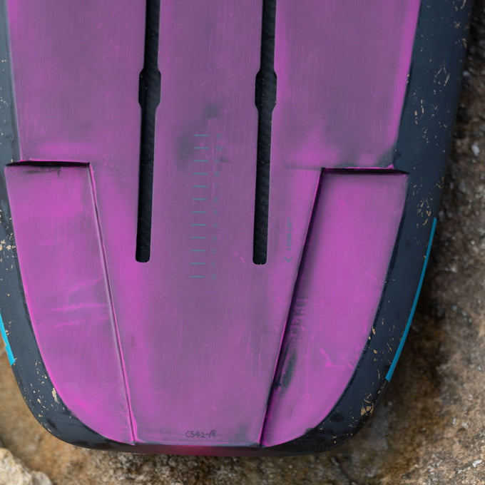 Les rails adoucis apportent de la tolérance lors des atterrissages et du confort lors des duck dives. Les découpes à l’arrière de la carène permettent une libération propre et des décollages facilités, tandis qu’un léger rocker avant évite d'enfourner lors des amerrissages et garantit une glisse fluide.