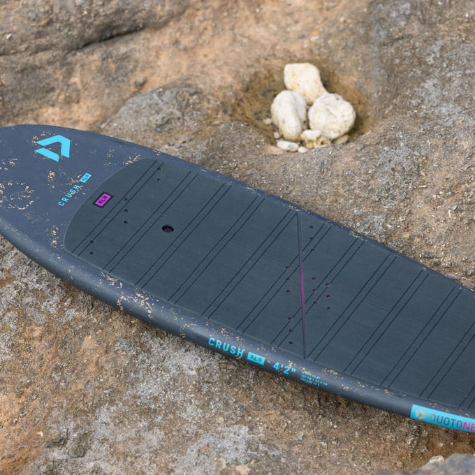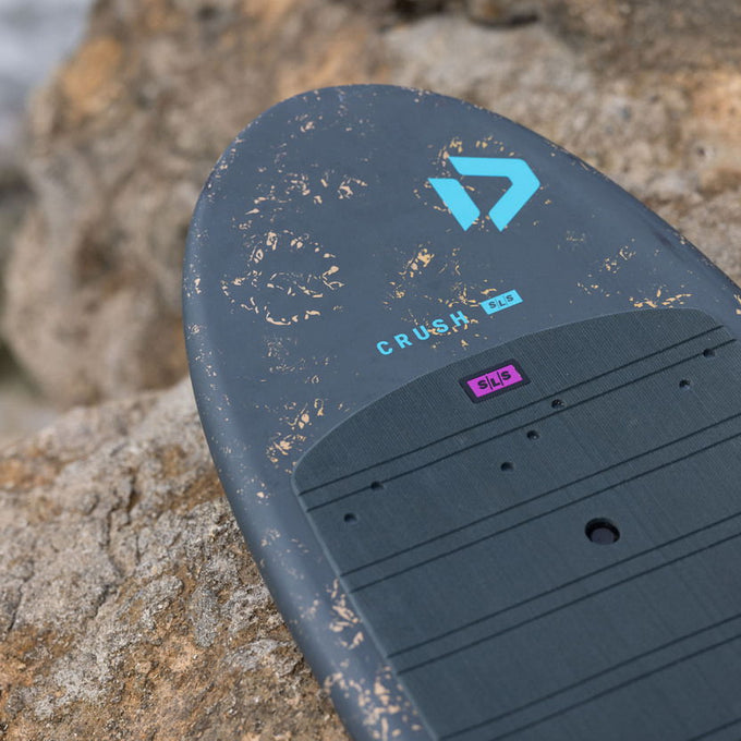 Conçue pour des performances ultra-légères, la Crush SLS fait l’impasse sur les inserts de footstraps afin d’optimiser le gain de poids. Ses rails en carbone allégés et son pad affiné offrent un retour direct et un contrôle précis. Sa construction intégrale en sandwich Biax Carbon/PVC garantit une solidité remarquable sans compromettre la légèreté ni la réactivité.