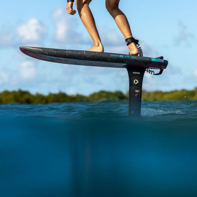 Une ligne de rocker basse favorise un pompage sans effort et une connexion fluide entre les vagues, tandis que le pont fin et épuré offre un contact direct et réactif avec le foil sous vos pieds.