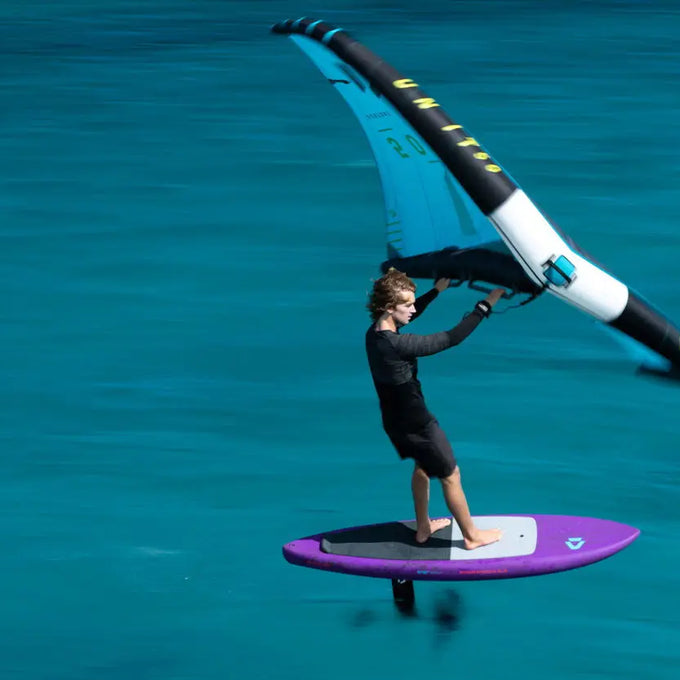 Sur les plus grands modèles, dès que le mouvement est lancé, les pin tails fins et les rails fortement biseautés permettent de pousser efficacement sur la surface pour pomper, décoller la planche de l'eau et monter sur le foil. Les rails arrondis à l'avant réduisent les risques d'accroche et de déviation de la planche dans des directions non souhaitées.