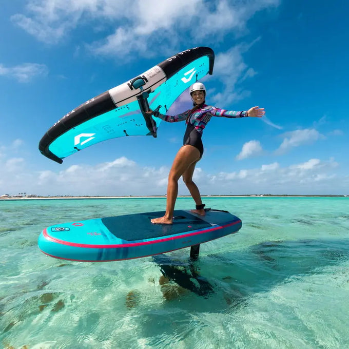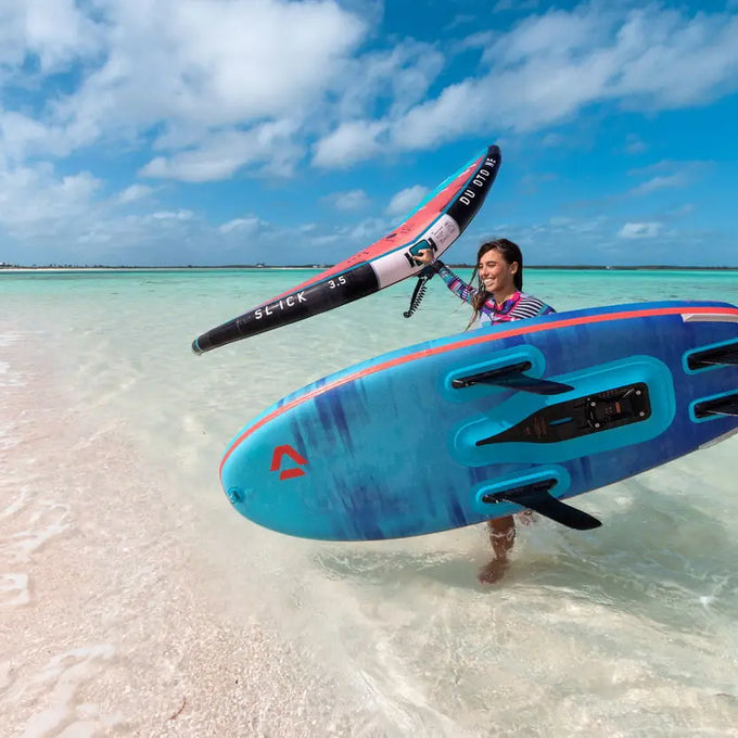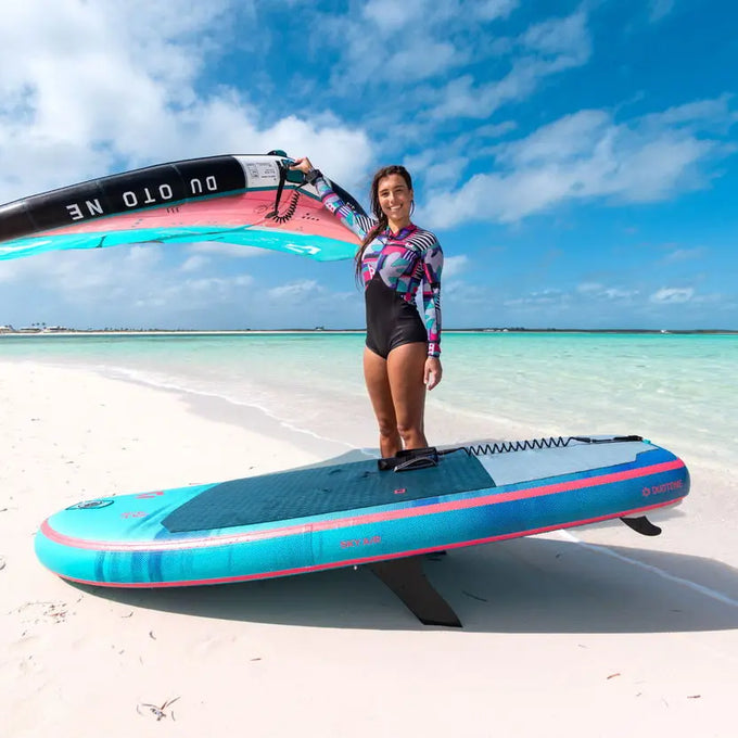La Sky Air est livrée dans un sac à dos à roulettes qui peut contenir la planche, la pompe et tous les accessoires. Il offre également un espace suffisant pour votre aile et votre foil, ce qui en fait le compagnon de voyage idéal.Avec ses trois modèles : 5'5" (105l), 5'9" (125l) et 7'2" (215l), la gamme Sky Air est concentrée sur les tailles les plus populaires des Sky Free, dont les deux plus petites correspondent au style et à la taille des Sky Free composite. La grande 7'2", est livrée avec des ailerons latéraux et arrière qui améliorent ses capacité au près lors de l'utilisation sans foil, afin d'apprendre les bases avant les premiers décollages.Ces trois modèles bénéficient de notre technologie de construction "Fusion light", qui comprend une plaque de carbone dotée des rails de fixation du foil et d'une poignée de transport, ce qui renforce et stabilise la zone de positionnement des pieds. Un rail en silicone facilitant l'écoulement et favorisant le décollage, différentes options de positionnement des straps, un sac de transport premium et une pompe "Multipump" pour la planche et l'aile complètent cet ensemble ludique, résistant et polyvalent.