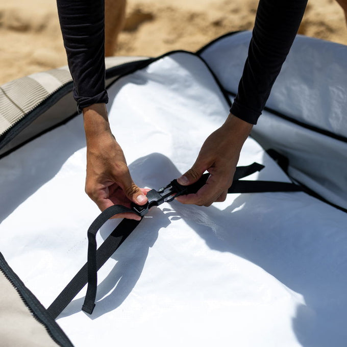 Easily connect the front carry handle of your Tec Boardbag to a luggage trolley for smooth airport navigation.