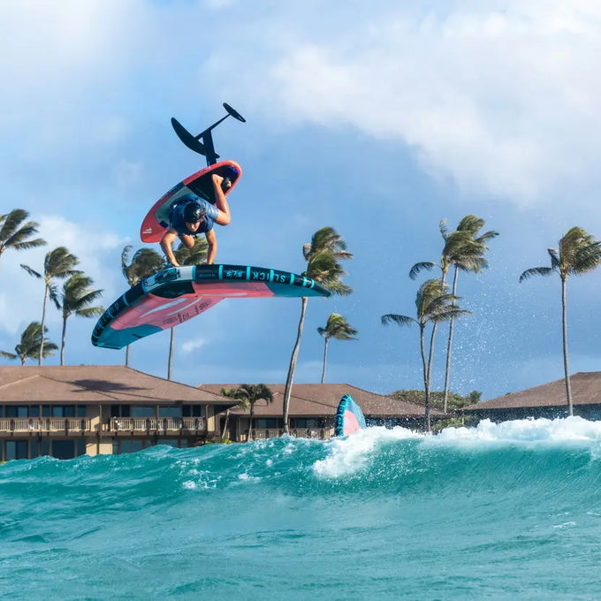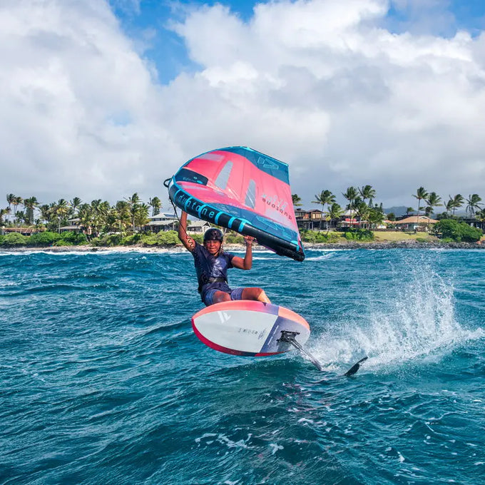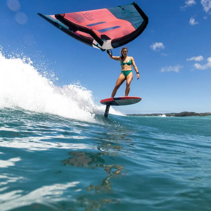 Concave rail bevels offer excellent hand grip for prone foiling with reduced rail catching in sharp turns
