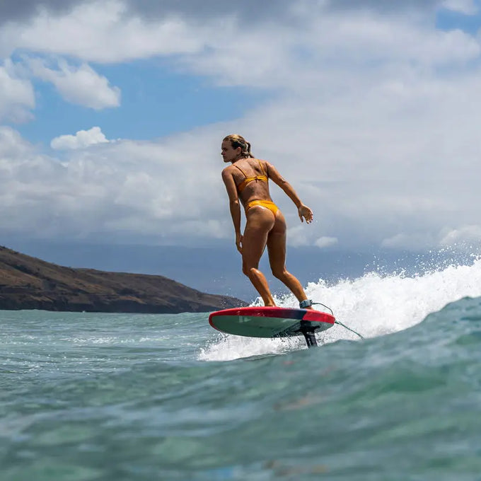 Le pont rabaissé offre la stabilité supplémentaire nécessaire pour maximiser l'efficacité du pompage avec un angle pont/foil optimisé. L’arrière à l'outline rentré et aux rails hauts, concaves et biseautés, permet des virages radicaux à n'importe quel endroit de la vague, sans risque d’accroche.