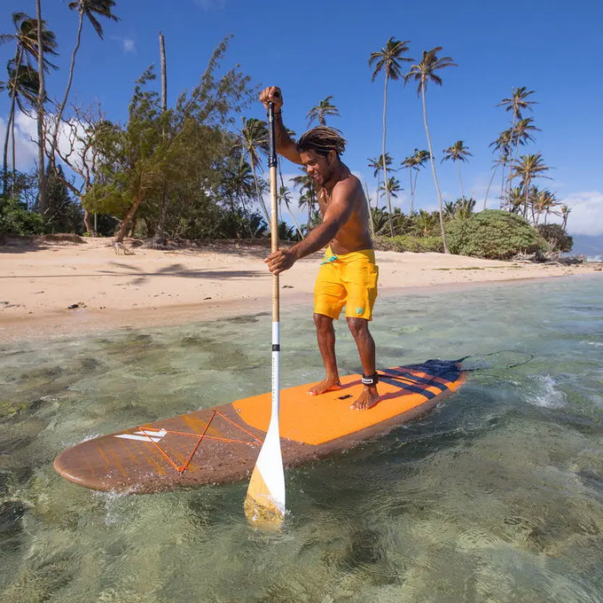Style et performances sont combinés dans cette Bambou Carbon 50. Un cœur en carbone recouvert de bambou apporte une finition élégante à cette pagaie d’entrée de gamme performance. Héritant de notre système Union Joint, elle profite d’une construction exceptionnelle pour ceux qui progresser en SUP. La torsion et la flexion de la pale sont parfaitement contrôlées grâce à son design. Disponible en 7.25” avec un manche à longueur fixe ou réglable, ainsi qu’en version trois parties.