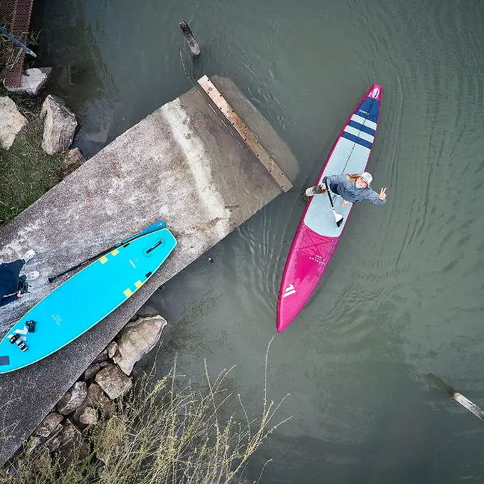Les quatre tailles de notre légère gonflable de course bénéficient d’un shape orienté course avec un arrière plus fin, disposant de bordures de rails en silicone permettant d’accroitre sa vitesse de pointe et de maximiser l’efficacité de sa glisse. Sa généreuse flottaison et sa construction ultra rigide Double Layer Premium lui assurent une bonne réactivité sur l’eau ainsi qu’une grande stabilité des appuis. Idéale pour les plans d’eau plats ou les downwind en haute mer, elles sont prêtes à faire la course.
