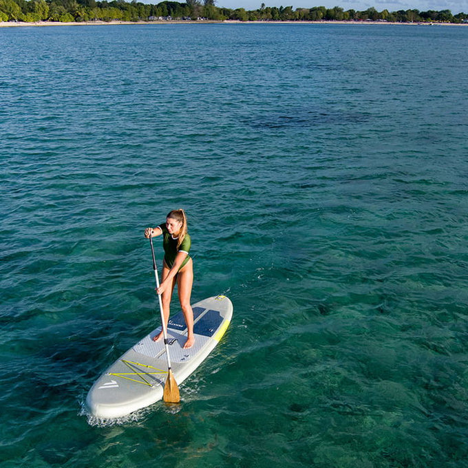 >> Nous avons remplacé le matériau industriel standard par un tissu DropStitch sur toutes nos planches. Ce matériau est 20 % plus léger mais encore plus rigide. Il est également plus compact et facile à rouler.