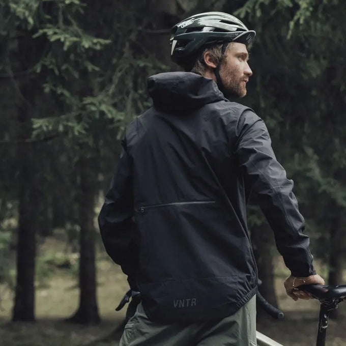 Une veste imperméable 2,5 couches légères et pliables pour rouler sur des surfaces mixtes.