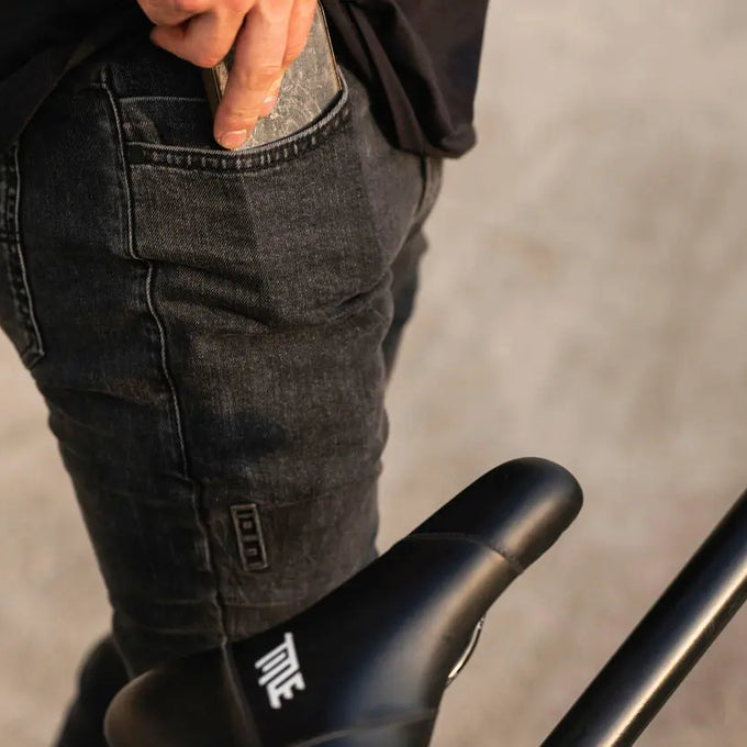 Le pantalon Seek à cinq poches et à la coupe unisexe tire son inspiration du monde urbain. Le jean élastique délavé apporte du confort sur le vélo et en dehors et garantit une liberté de mouvement quand il le faut.