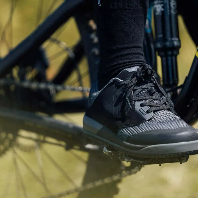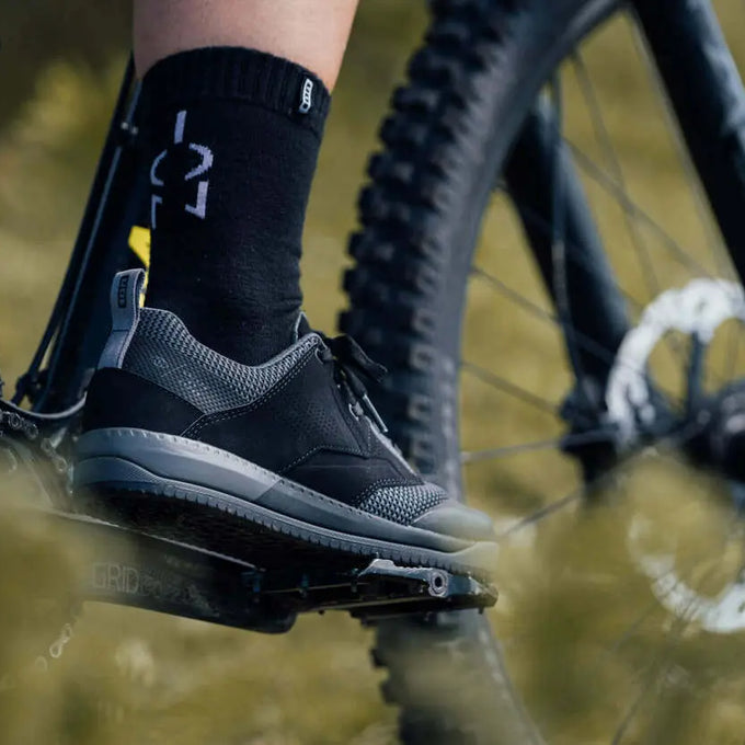 Take control! ION's Flat Pedal outsole provides great grip through a thoughtful design and superior rubber compound by SupTraction. The outsole profile features positive threads in the forefoot and heel area for perfect traction while pushing or carrying your bike. The negative profile, on the other hand, offers the perfect grip and space for the pins while riding. On top, the SUPTraction_Rubbercompund provides all the grip you need.