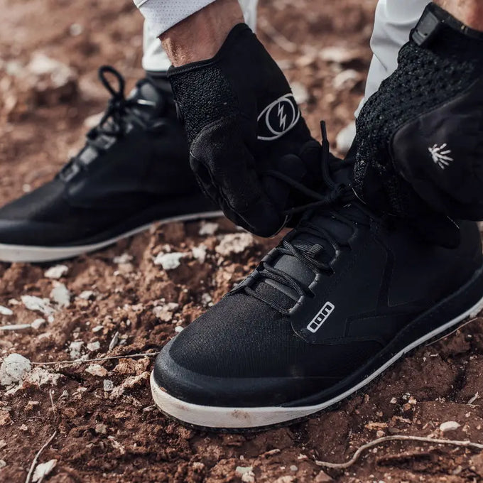 Développer de nouvelles chaussures, c’est comme améliorer sa recette préférée : on garde la même base en variant un peu les doses. Fidèle à l'image d’ION avec un mélange parfait d'accroche, de durabilité, de facilité d'utilisation et de style, la chaussure pour pédale plate continue d'évoluer. L’ingrédient principal, un concept de semelle Pin Tonic 2.0, est une nouvelle version plus délicieuse encore pour satisfaire tous les riders affamés de sorties à la journée. Le nouveau profil de semelle extérieure vient avec des accroches positives à l’avant-pied et au niveau du talon pour une traction parfaite en poussant ou lors du port de vélo. Les accroches négatives apportent une adhérence parfaite et de l’espace pour les picots. De plus, la SUPTraction est équipée d’un composé caoutchouc plus collant. Complètement changer la recette n’est pas toujours la bonne solution, la Scrub Select est équipée d’une semelle intermédiaire en EVA et d’une semelle intérieure confortables. L'accroche n’étant qu’un composant de la transmission de puissance, la zone complètement à l’avant des orteils dispose d'une partie plus basse pour un contact maximal sur la pédale. L'accroche ne suffit pas pour obtenir une bonne chaussure de vélo, c’est pourquoi celles-ci disposent d’une protection contre pierres et racines au niveau des orteils et protègent les chevilles des manivelles (Ankle_Pad). Montrez que vous avez du goût avec cette chaussure pour pédale plate stylée.