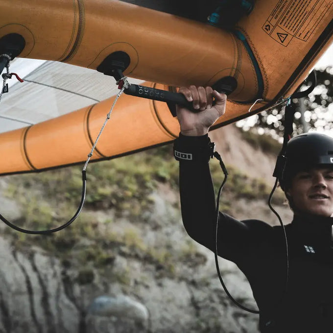Le bout de harnais est fait pour être utilisé avec un harnais de wing. Le bout de harnais est extrêmement léger, presque imperceptible. Accroche-toi quand tu as besoin de te soulager dans les vents forts et rafaleux, ou tout simplement pour reposer tes bras. Grâce au système de réglage, la longueur du bout de harnais peut varier de 70 à 90 cm / de 27,5 à 35,5 pouces. Le réglage avec les nœuds est utilisé en kitesurf et facile à manier. La gaine au centre solidifie le bout.