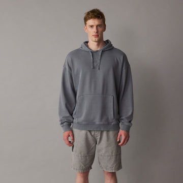 Sa coupe oversize avec épaules descendues crée une silhouette décontractée, et son léger effet délavé lui donne une allure déjà portée dès le premier jour.
