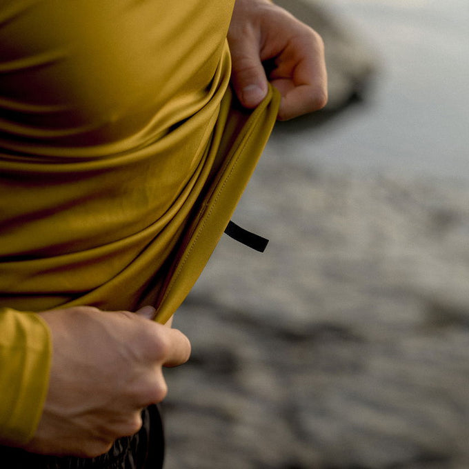 Avec sa coupe ajustée et sa matière souple, le Rashguard manches longues pour hommes t’offre une protection légère contre les UV. Ce grand classique est fabriqué à partir de matériaux recyclés et sublimé par un imprimé élégant au niveau du dos. Les manches style raglan nous ont permis de réduire au minimum les coutures dans la zone des épaules pour améliorer le confort. Ride en toute simplicité grâce au slip_loop, qui te permet de connecter ton haut à ton boardshort.