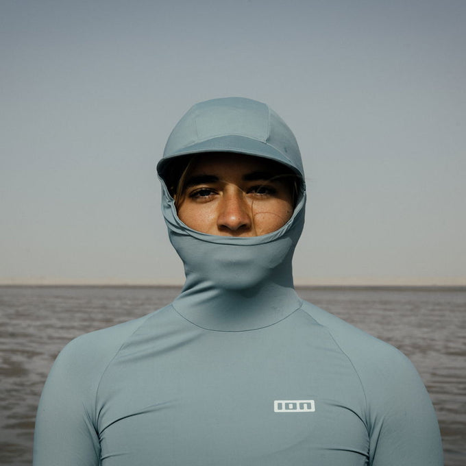 La capuche ajustée avec masque en mesh se glisse facilement sous un casque ou une casquette. Les manches longues avec pouce et fenêtre pour montre étendent la protection jusqu’aux mains.