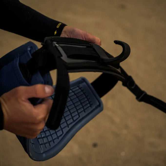 Le Rave vient une nouvelle fois améliorer l’offre des harnais de wing foil. Le Rave est un harnais en version souple. Il possède une coque en EVA entièrement moulée hydrophobe. Son rembourrage intérieur en EVA améliore la sensation de confort. De conception légère, il possède un anneau mobile pour faciliter les sessions de pagaie et pour changer de position facilement. Il soulage les avant-bras en réduisant la fatigue pour des sessions plus longues. Tu peux maintenant attacher ton leash directement sur le harnais et faire glisser le crochet sur le côté lorsque tu pagaies. Grâce à son poids plume (moins de 1 kg), tu sens le Rave uniquement lorsque tu l’utilises.