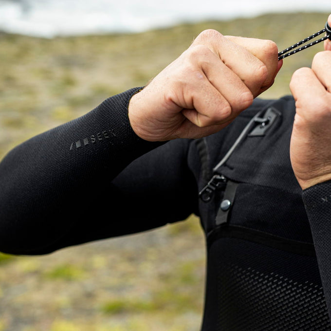 La combinaison Seek Select 5.5/4.5 Front Zip à capuche associe des matériaux haut de gamme - notamment des doublures thermiques recyclées, Max_Flex, graphène et le tout nouveau Exo_Shield - pour une chaleur et une flexibilité inégalées.