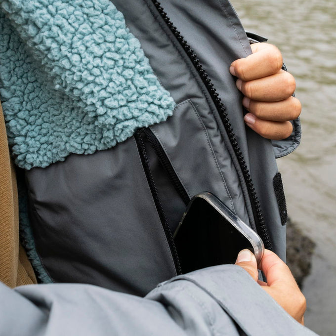 Maîtrise les éléments sur l’eau et en dehors. La veste Storm Coat est à la fois une cabine pour se changer et une couche extérieure confortable. Sa coupe ample te permet d’enfiler et de retirer ta combinaison aisément.