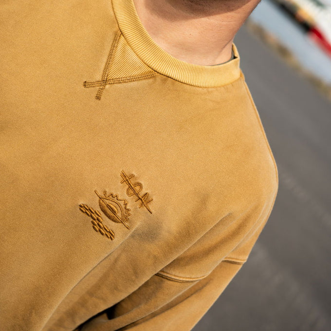 Le pull Mood pour homme est fabriqué dans un mélange de coton biologique et de polyester recyclé, offrant une sensation douce et premium au quotidien.