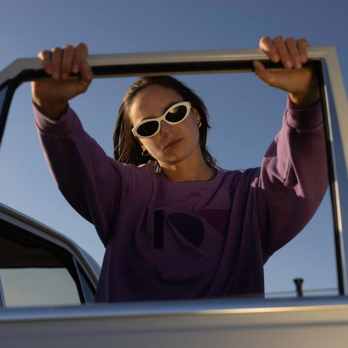 Pull teint-en-pièce, 100 % coton bio, avec une broderie chenille unique sur la poitrine.