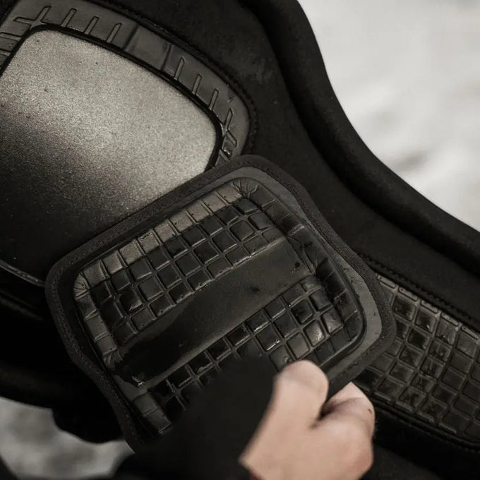 The exchangeable Ergo_Pad on the harness inside offers optimal lumbar support in two profiles (medium and high support). For individual back support & injury prevention.